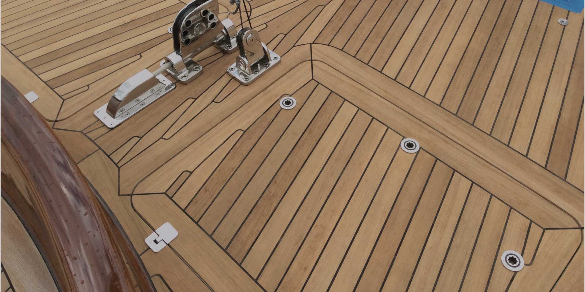 Yatın kullanım programı montaj süresini kısıtlıyorsa, ön imalat panelleri üretiriz. 6 mm deniz kontrplağından alınan şablonlar üzerinde tik atölyede döşenip derzlenir, ardından panel tek parça hâlinde güverteye yapıştırılır. Bu yöntem montajı hızlandırır ve çalışma kalınlığını ~8 mm’ye düşürmeye imkân tanır. Panellerin tabana kusursuz yapışması için, bölge ve hava koşullarına bağlı olarak, yapıştırıcı tamamen kürleşene kadar ağırlıklar veya vakum torbası kullanırız.